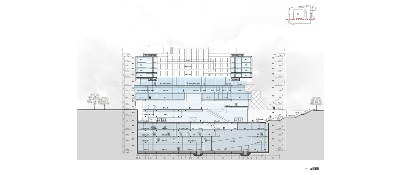 門廳、展廳、拍賣大廳及配套用房;酒店、餐飲及配套服務(wù)用房、拍賣大廳、庫房、汽車庫、機電用房、后勤用房
