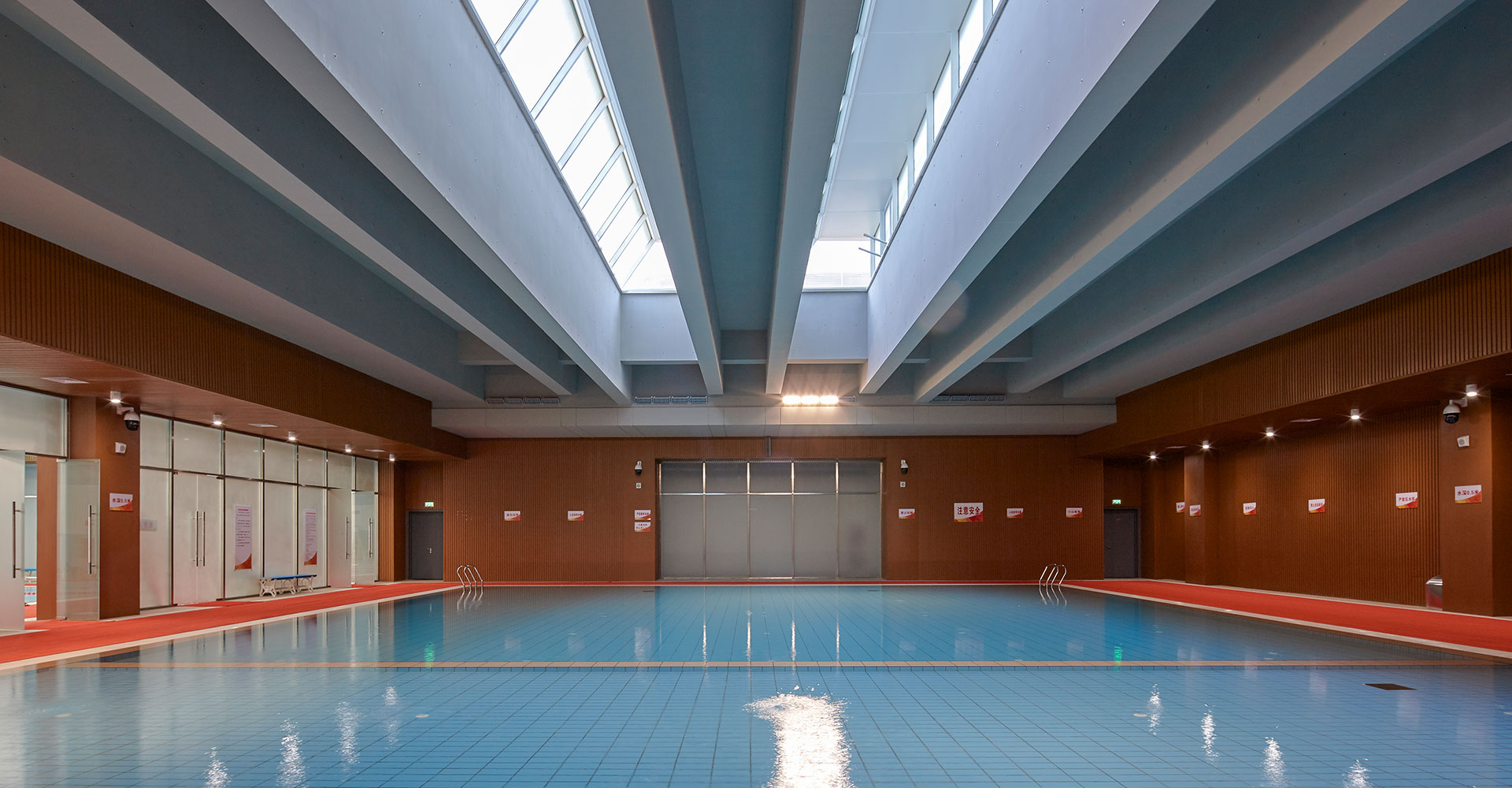 采用采光筒與吸聲垂片的搭配使用,即保證屋面防水可靠性又形成了室內(nèi)豐富光影效果,