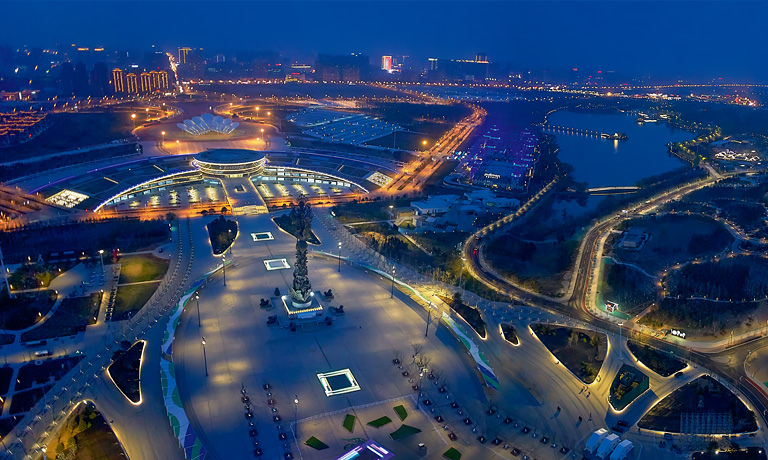 瓷園的設(shè)計靈感來源于古代海上絲綢之路,是三進(jìn)式四合院意境的提煉,園內(nèi)構(gòu)建采用磚石、銅質(zhì)、玻璃和水等材料的現(xiàn)代手法,抽象寫意地表達(dá)了傳統(tǒng)形制生活的影響。陶瓷印記的展現(xiàn),強(qiáng)調(diào)CHINA(瓷國)悠久厚重的文化內(nèi)涵。