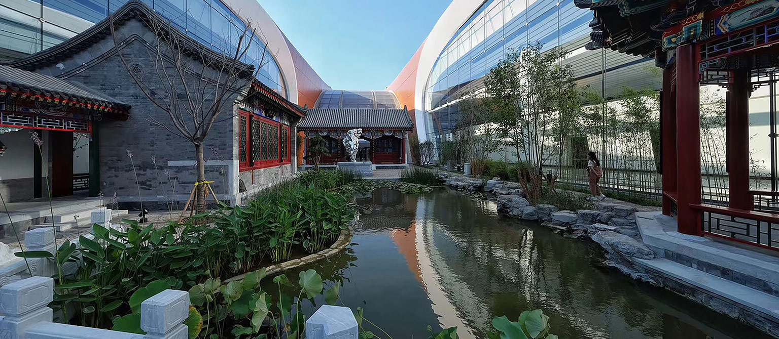 中國園復(fù)原了中國傳統(tǒng)園林暢園的平面布局,北方園林古建、蘇式彩繪,牌匾楹聯(lián)文化、書法,假山、瀑布、湖景、石景、綠化、游魚等造景,共同組成傳統(tǒng)園林的重要元素。