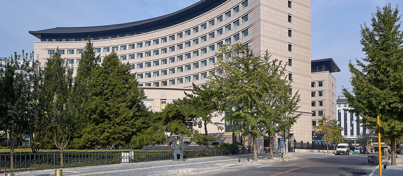 在維持原有建筑形象的同時,進行優(yōu)化設(shè)計,尊重婦聯(lián)歷史和本地段建筑文脈,與周圍環(huán)境協(xié)調(diào),體現(xiàn)沉穩(wěn),莊重,包容,不張揚的理念。布局上因地制宜,將原有主體南側(cè)擴建一禮儀大廳,整個建筑群體近似“工”字形,在東側(cè)圍合為一個東院,為日常人流車流提供回轉(zhuǎn)空間,南部為禮儀性出入口空間緊鄰城市綠化帶。