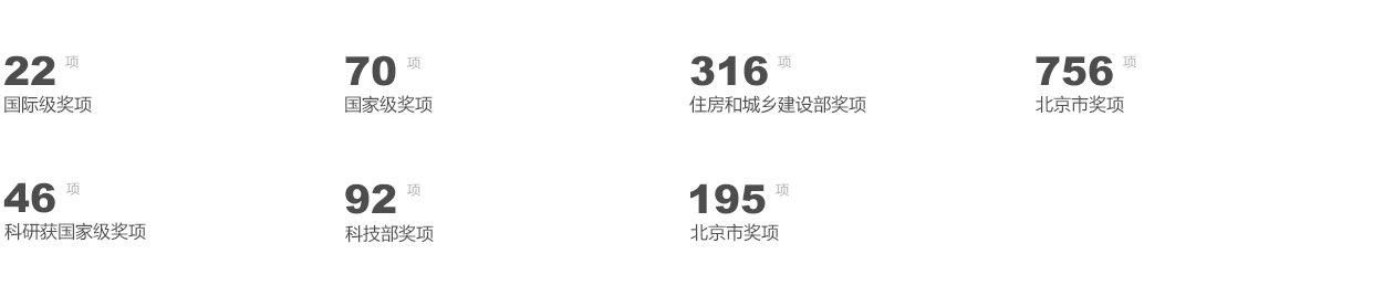 BIAD始終活躍在國家建設(shè)領(lǐng)域的最前沿,收獲了豐碩成果,BIAD設(shè)計獲國際級獎項22 項,國家級獎項70項,住房和城鄉(xiāng)建設(shè)部獎項316項,北京市獎項756項;科研獲國家級獎項46項,科技部獎項92項,北京市獎項195 項。