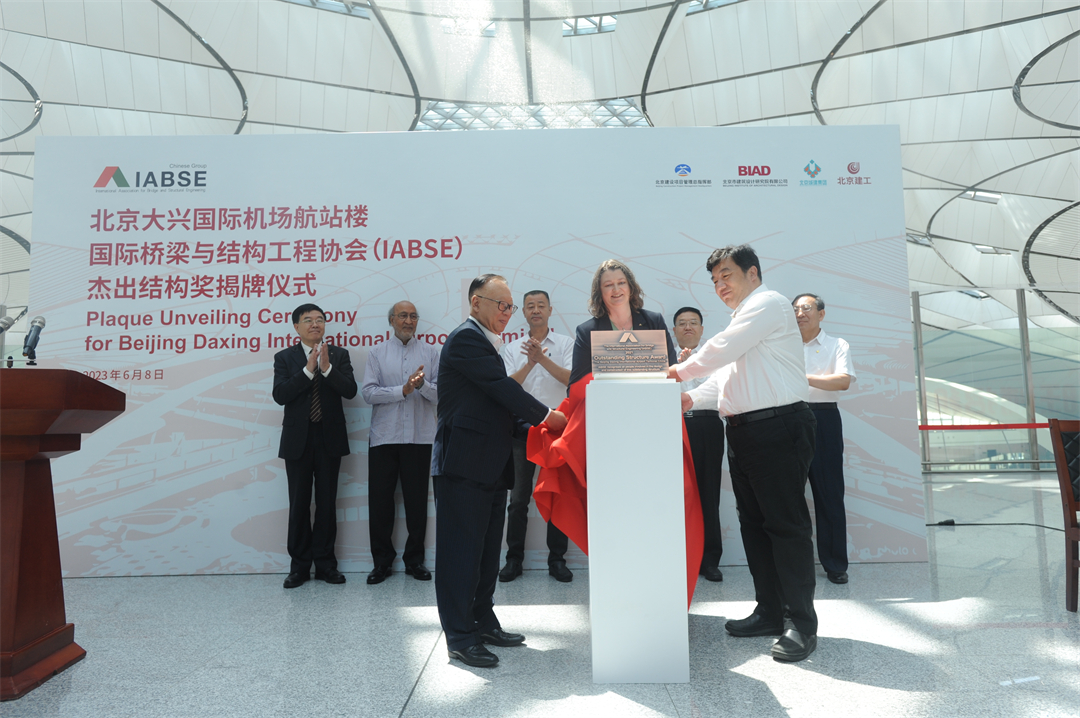 6月8日上午,國(guó)際橋梁與結(jié)構(gòu)工程協(xié)會(huì)(IABSE)“杰出結(jié)構(gòu)獎(jiǎng)”揭牌儀式在北京大興國(guó)際機(jī)場(chǎng)航站樓舉行,北京大興國(guó)際機(jī)場(chǎng)航站樓憑借工程建設(shè)中展現(xiàn)的可持續(xù)性、創(chuàng)新性、方案卓越性和結(jié)構(gòu)創(chuàng)新性,獲得“杰出結(jié)構(gòu)獎(jiǎng)”。