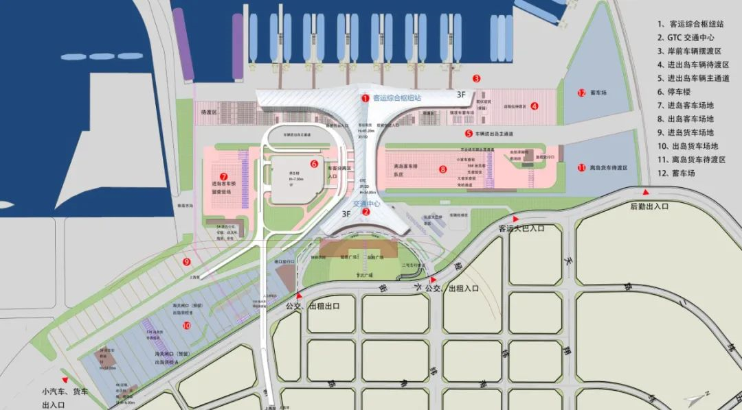 ??谛潞8鄣脑O(shè)計過程,綜合了北京建院在機場設(shè)計中系統(tǒng)化疏解復雜問題的設(shè)計經(jīng)驗。以需求和流程為先導,系統(tǒng)化控制為手段,為國內(nèi)大型滾裝港口設(shè)計領(lǐng)域增加了人車分檢,客貨分檢新的規(guī)劃形式。即將投用的新海港,也必將為即將封關(guān)運作的海南島,增添一座靚麗的新門戶。