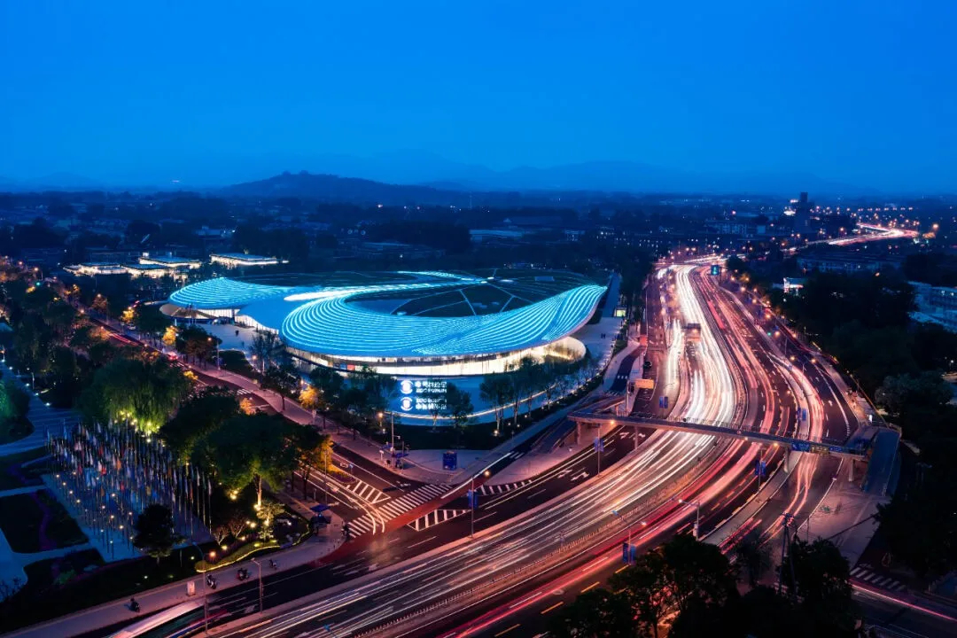 計算機模擬輔助營造聲學(xué)、光學(xué)及室內(nèi)外微氣候環(huán)境,打造國際一流的室內(nèi)會議聲光熱環(huán)境。BIM全天候全過程模擬,實現(xiàn)復(fù)雜表皮、異形結(jié)構(gòu)及多專業(yè)交叉作業(yè)下的三維協(xié)同設(shè)計。智能運維、云數(shù)據(jù)控制,實現(xiàn)了永久會址運營期間的智能、高效、節(jié)能,成為新一代高端未來會議中心的典范。