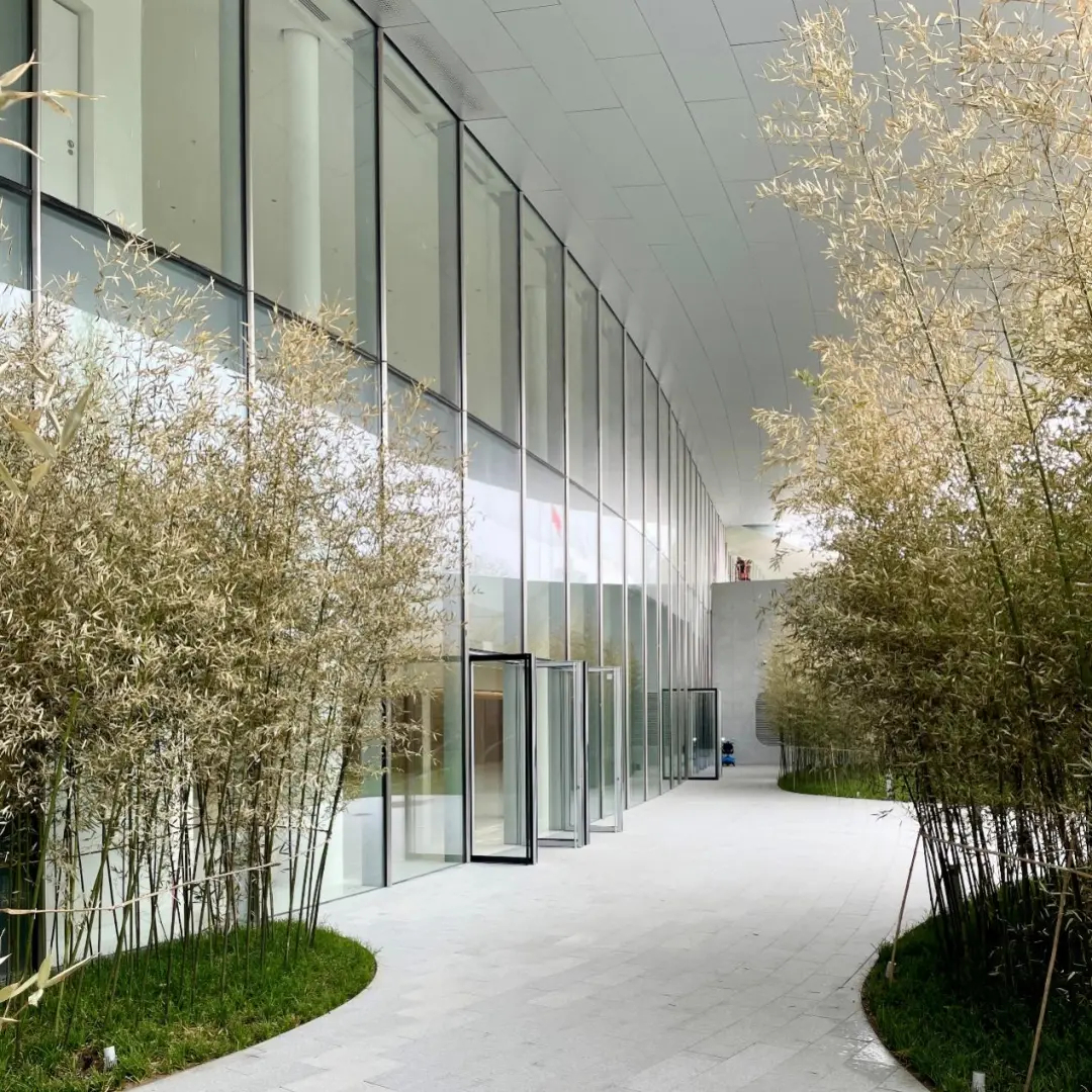 順應(yīng)國家雙碳理念,對高能耗會議建筑實現(xiàn)綠色低碳,實現(xiàn)綠建三星設(shè)計標準。對可再生能源進行復(fù)合系統(tǒng)的使用,采用地源熱泵+空氣源熱泵的復(fù)合能源方案,實現(xiàn)建筑運行的高效節(jié)能。多維度的節(jié)能措施降低傳熱系數(shù),實現(xiàn)被動節(jié)能減碳。場地海綿技術(shù)措施的全面利用,增強吸水、蓄水、凈水、釋水的能力,減少雨水排放量。完美詮釋“森林中的會議中心”的理念,保留場地內(nèi)古樹,承載歷史古韻,演繹自然新生。