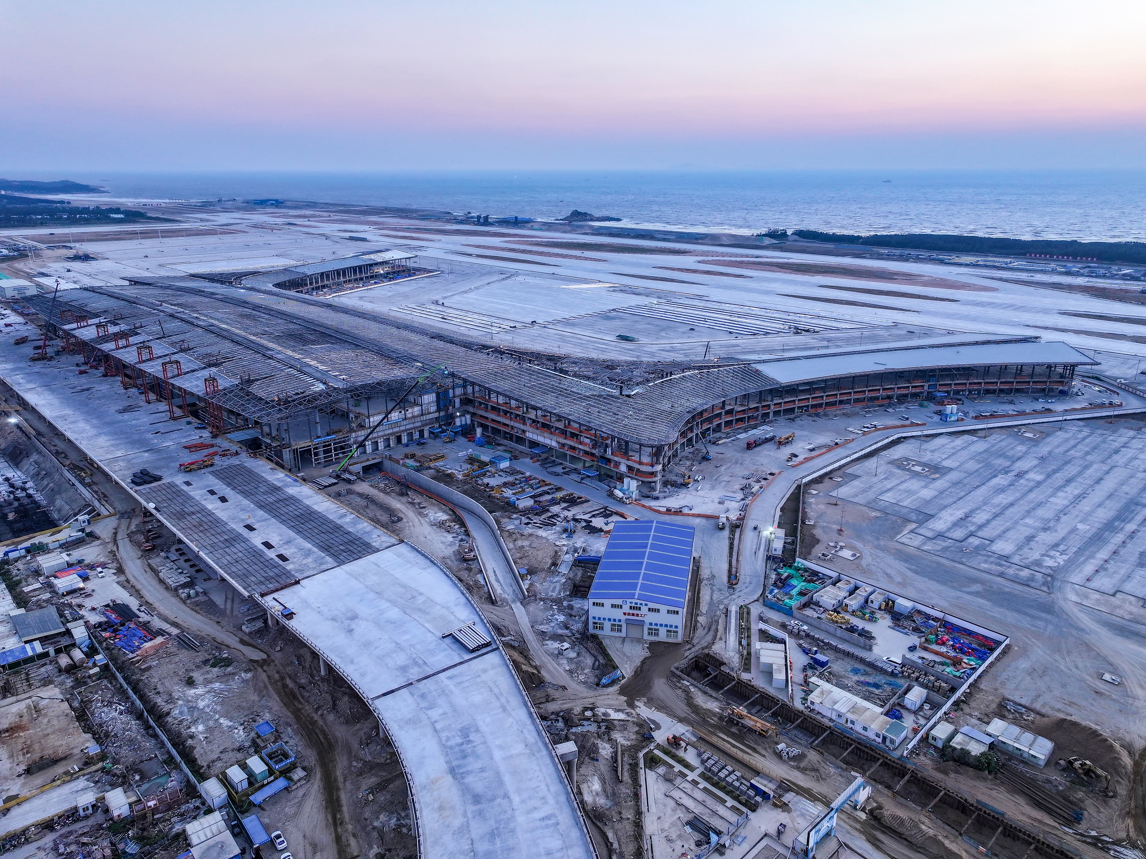 福州長(zhǎng)樂(lè)國(guó)際機(jī)場(chǎng)二期擴(kuò)建工程定位為海上絲綢之路的大型門戶樞紐機(jī)場(chǎng),建設(shè)完成后機(jī)場(chǎng)將以嶄新的面貌矗立于東南沿海,助力福州打造生態(tài)山水之城、海絲魅力之都、人文有福之州,實(shí)現(xiàn)城市全方位高質(zhì)量發(fā)展。本期擴(kuò)建以2030年為設(shè)計(jì)目標(biāo)年,預(yù)計(jì)年旅客吞吐量3600萬(wàn)人次,遠(yuǎn)期2050年達(dá)到7000萬(wàn)人次。航站區(qū)工程于2023年開(kāi)工建設(shè),包括新建T2航站樓(25.8萬(wàn)平方米)、綜合交通中心(8.2萬(wàn)平方米)、停車樓(12萬(wàn)平方米)、旅客過(guò)夜用房(4萬(wàn)平方米)以及能源中心、道橋停車場(chǎng)等附屬設(shè)施。
