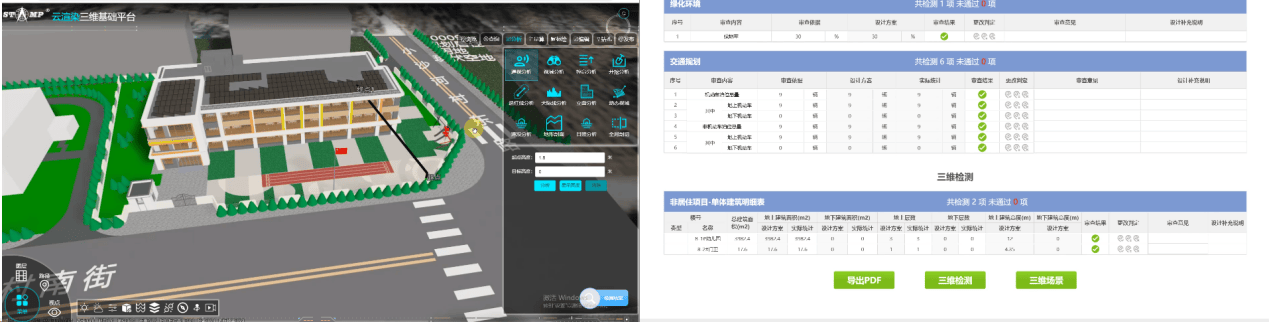 北京建院研發(fā)的北京市二三維一體化BIM審查系統(tǒng),服務(wù)于北京市工程建設(shè)項(xiàng)目全程網(wǎng)辦電子報(bào)建。項(xiàng)目建設(shè)單位在進(jìn)行項(xiàng)目申報(bào)時(shí),委托設(shè)計(jì)單位協(xié)同完成申報(bào)材料準(zhǔn)備。設(shè)計(jì)單位在規(guī)自委網(wǎng)站下載報(bào)建工具插件,對(duì)已經(jīng)設(shè)計(jì)完成的圖紙進(jìn)行數(shù)據(jù)整理,并進(jìn)行規(guī)劃指標(biāo)自檢,自檢合格后生成電子報(bào)審的標(biāo)準(zhǔn)數(shù)據(jù)BDB格式文件。建設(shè)單位在北京市工程建設(shè)項(xiàng)目審批管理系統(tǒng)完成申報(bào)后,進(jìn)入網(wǎng)上辦件流轉(zhuǎn)環(huán)節(jié),業(yè)務(wù)人員在項(xiàng)目審批辦事服務(wù)平臺(tái)中使用二三維一體化BIM審查系統(tǒng)在線進(jìn)行審查。審查過(guò)程中,在原有的辦件審查過(guò)程中,增加了二維三維聯(lián)動(dòng)精細(xì)化審查環(huán)節(jié),例如建筑面積等重要規(guī)劃指標(biāo)全部可以實(shí)質(zhì)性智能審查。北京市二三維一體化BIM審查系統(tǒng)除了主要審查項(xiàng)目規(guī)劃指標(biāo)外,同時(shí)對(duì)于項(xiàng)目的周邊也可進(jìn)行智能審查。
