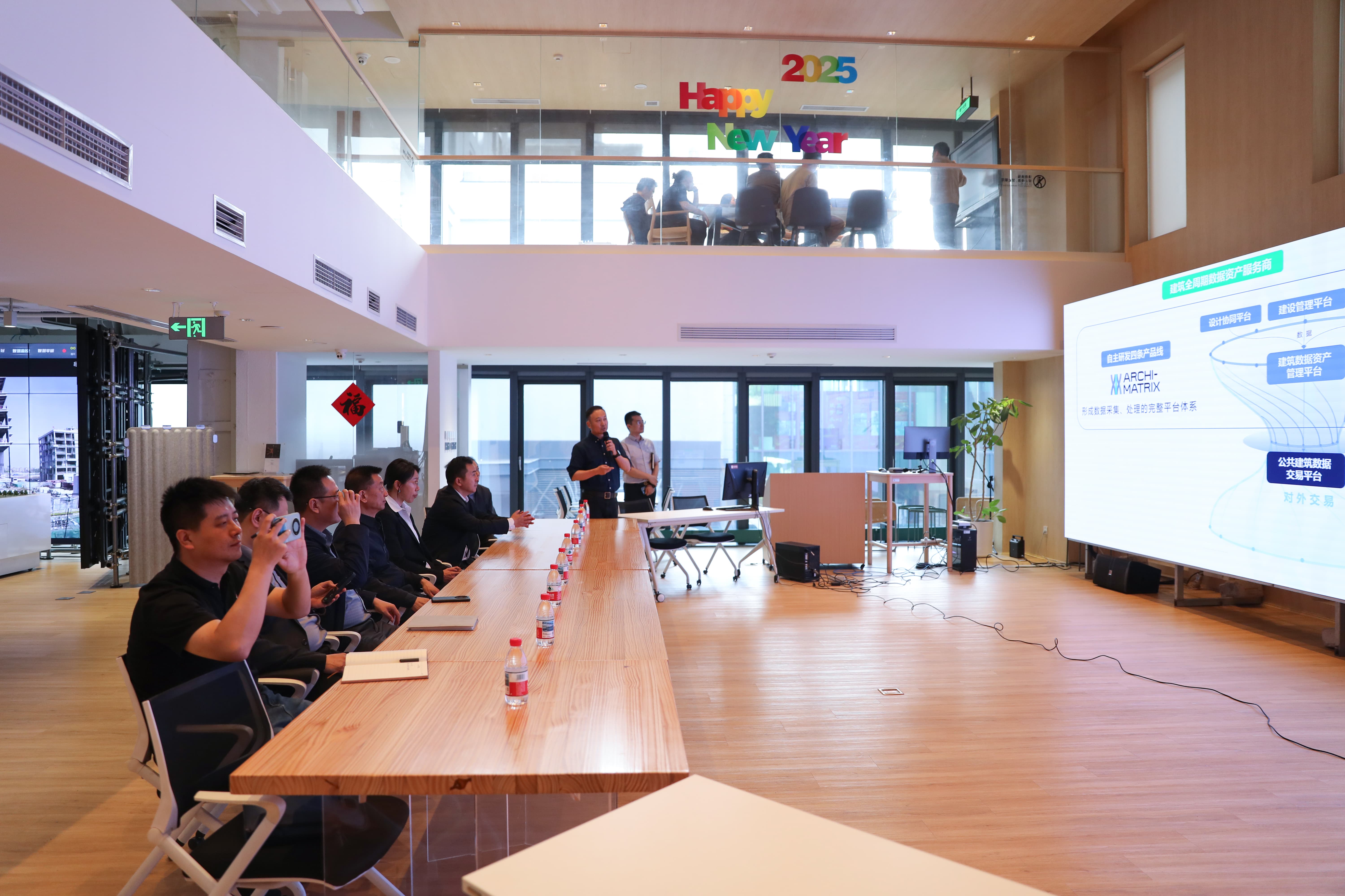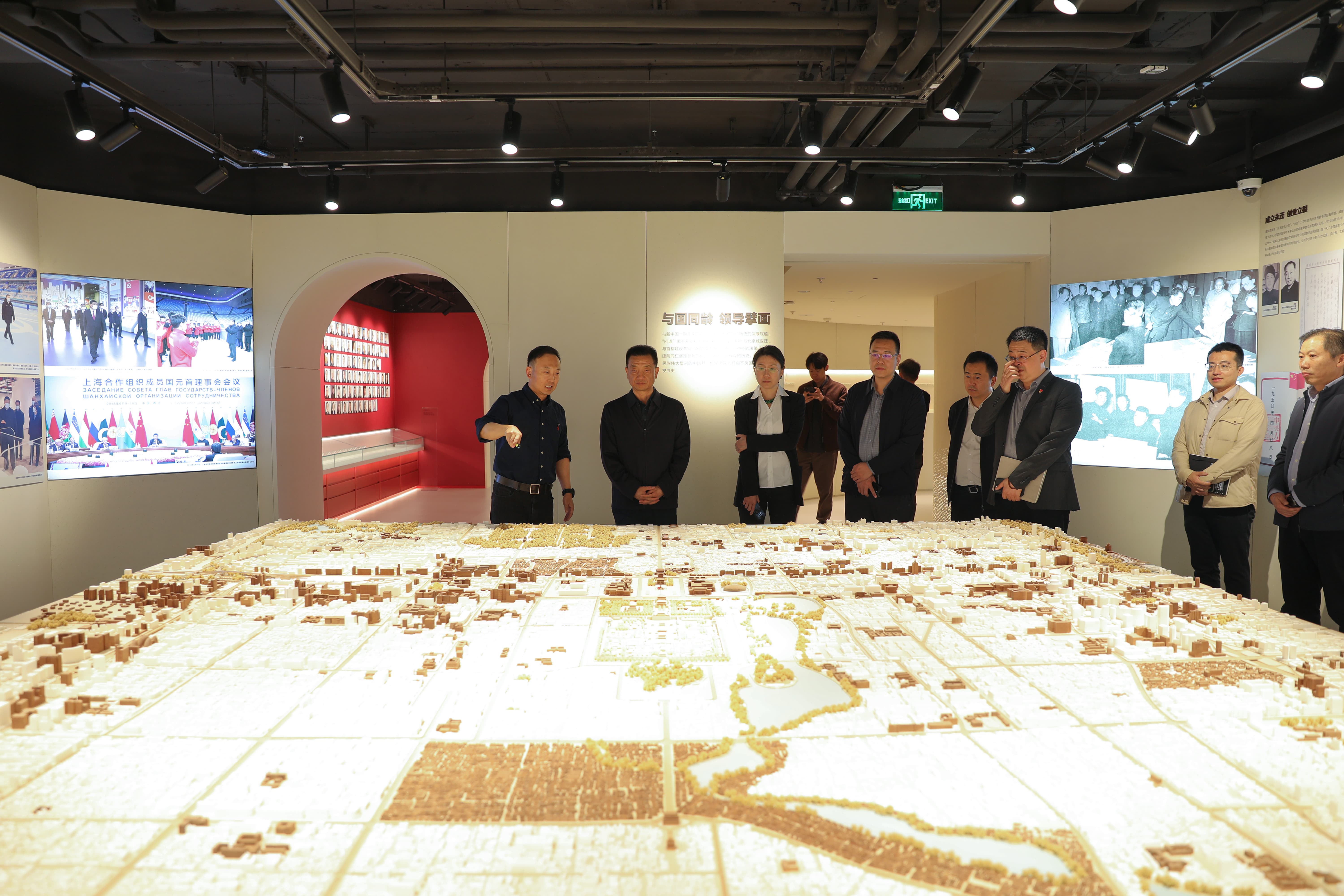 隨后,新疆住建廳領(lǐng)導(dǎo)一行參觀了北京建院院史館,了解了北京建院發(fā)展歷程、重點(diǎn)項(xiàng)目、創(chuàng)新發(fā)展等內(nèi)容。在數(shù)字科技研究院,李宏斌詳細(xì)聽(tīng)取了北京建院取得的數(shù)字科技創(chuàng)新成果,重點(diǎn)調(diào)研了北京建院自主研發(fā)的數(shù)字科技產(chǎn)品,對(duì)“聆波”數(shù)字化協(xié)同管理平臺(tái)、“曉圖”數(shù)據(jù)資產(chǎn)管理平臺(tái)、“靈控”智慧建筑運(yùn)營(yíng)管理平臺(tái)、“英心”國(guó)產(chǎn)三維圖形引擎等數(shù)字化產(chǎn)品線、國(guó)徽3D數(shù)字模型制作和國(guó)家標(biāo)準(zhǔn)修訂工作以及北京市規(guī)自委二三維報(bào)審平臺(tái)等工作給予認(rèn)可和高度評(píng)價(jià)。