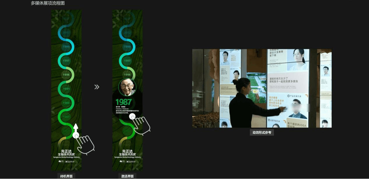 創(chuàng)新亮點:以種子視角講述科技與文明的共生關(guān)系,結(jié)尾落腳先正達的使命,引發(fā)情感共鳴,實現(xiàn)主題升華;展示內(nèi)容可根據(jù)受眾需求動態(tài)調(diào)整,兼顧專業(yè)性與科普性,實現(xiàn)靈活可變。