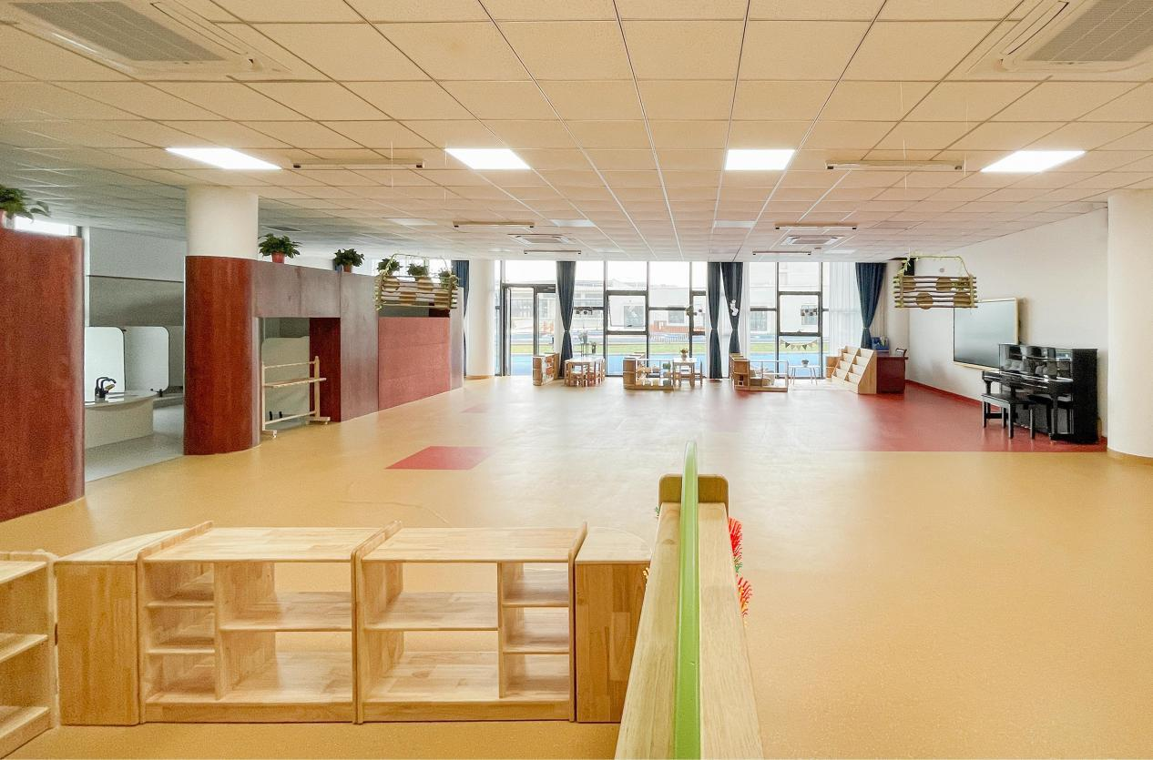 設(shè)計(jì)注重適幼化細(xì)節(jié)設(shè)計(jì),空間尺度及家具尺寸符合幼兒人體工學(xué),采用圓角家具、防撞軟包,營(yíng)造園區(qū)安全溫馨的氛圍。室內(nèi)整體色彩以木色為主,局部亮色突出活力,營(yíng)造家的溫馨和歸屬感。