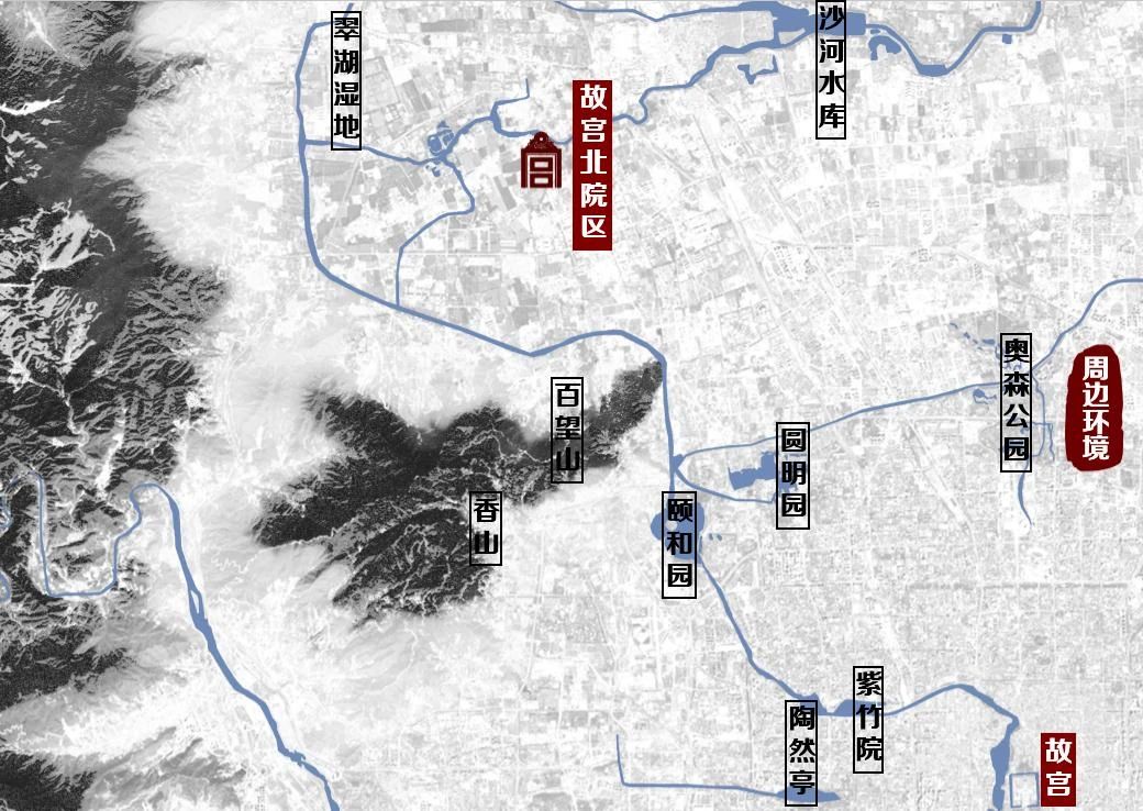 從地理位置上看,故宮博物院北院區(qū)建設(shè)地點(diǎn)位于海淀區(qū)西北旺鎮(zhèn)西玉河村范圍內(nèi),是“平安故宮”工程的核心組成部分。項(xiàng)目總用地面積62.01公頃,總建筑面積10.2萬平方米,建設(shè)內(nèi)容包括文物展廳35000平方米、文物修護(hù)用房20000平方米、文物庫房23000平方米、數(shù)字故宮文化傳播用房9500平方米、觀眾服務(wù)用房2500平方米、綜合配套設(shè)施用房12000平方米等。