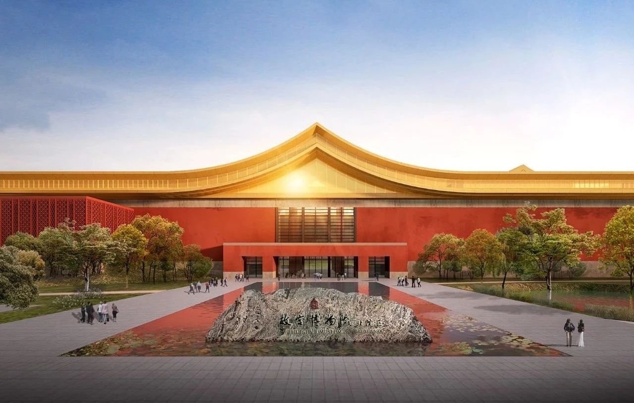 從效果圖上看,南側(cè)臨水、北面疊山的故宮博物院北院區(qū),在建筑上就很有傳統(tǒng)文化風(fēng)韻,灰色外城、紅色內(nèi)墻和金色的重檐,讓人一眼就能聯(lián)想到故宮,東西向的軸線設(shè)計(jì)也充滿了秩序感。