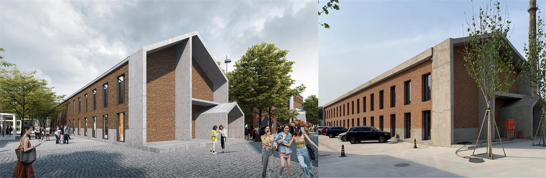 在城市更新分享交流環(huán)節(jié),北京建院胡越工作室副主任游亞鵬詳細介紹了城市綠心保留建筑造紙七廠改造案例,并分享了在設計中的心得體會。北京造紙七廠不僅伴隨著北京城的發(fā)展,也承載了幾代人的奮斗,保留風貌與提升品質(zhì)是設計團隊秉持的理念,如今的廠區(qū)將轉化為文化藝術展場?,F(xiàn)存的六棟小廠房建筑外觀盡可能保留,根據(jù)結構計算進行加固處理,確保建筑安全性,并通過內(nèi)部空間再設計提升空間功能性和豐富性。更重要的設計步驟體現(xiàn)在各建筑之間的廠區(qū)公共空間中,原廠區(qū)大部分建筑已拆除,保留的六棟建筑顯得分散,廠區(qū)比較空曠,設計團隊在廠區(qū)原有建筑的原位上設計了有墻無頂?shù)臉嬛铮箯S區(qū)的工業(yè)風貌得到恢復,同時提供了未來可供市民活動的豐富的室外、半室外展場,更使七廠和綠心的歷史痕跡擁有了訴說和展示的空間。