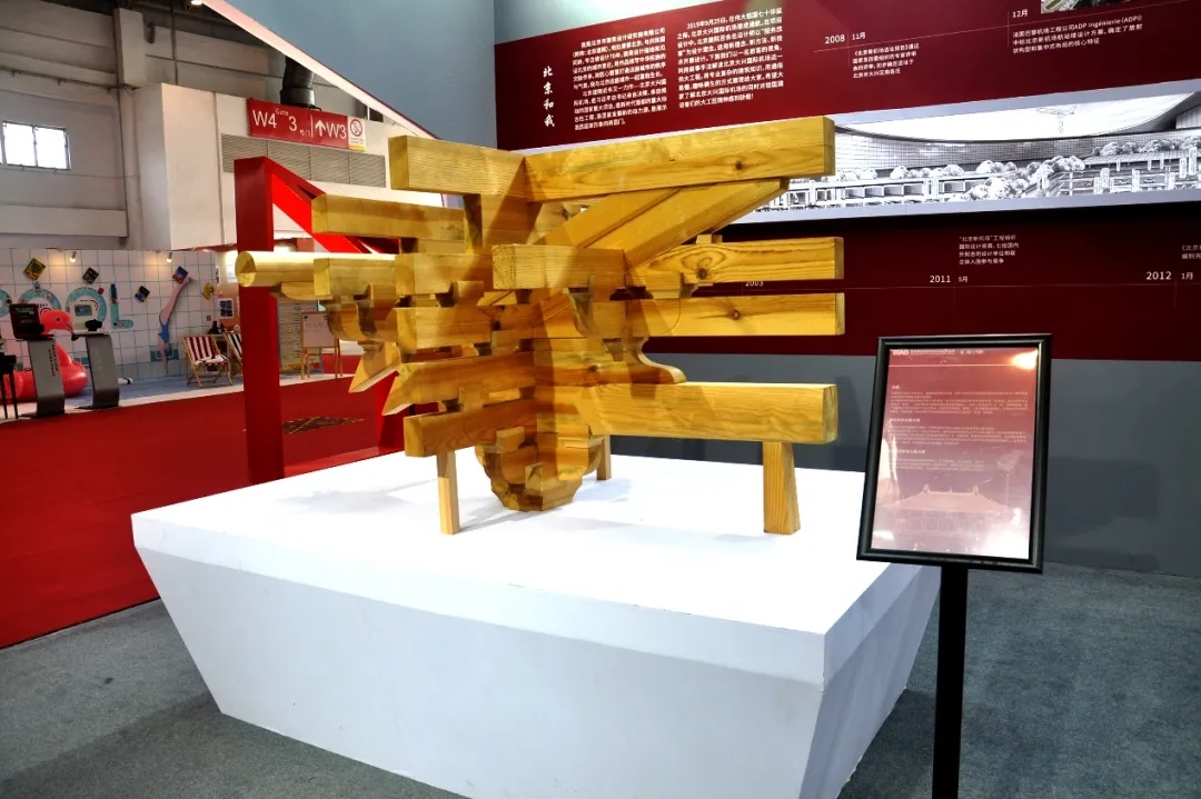 現(xiàn)場展示1:3比例的佛光寺大殿外檐柱頭鋪?zhàn)龅亩窎砟P?,力求精?zhǔn)展示中國古代建筑斗栱的結(jié)構(gòu)和裝飾功效。