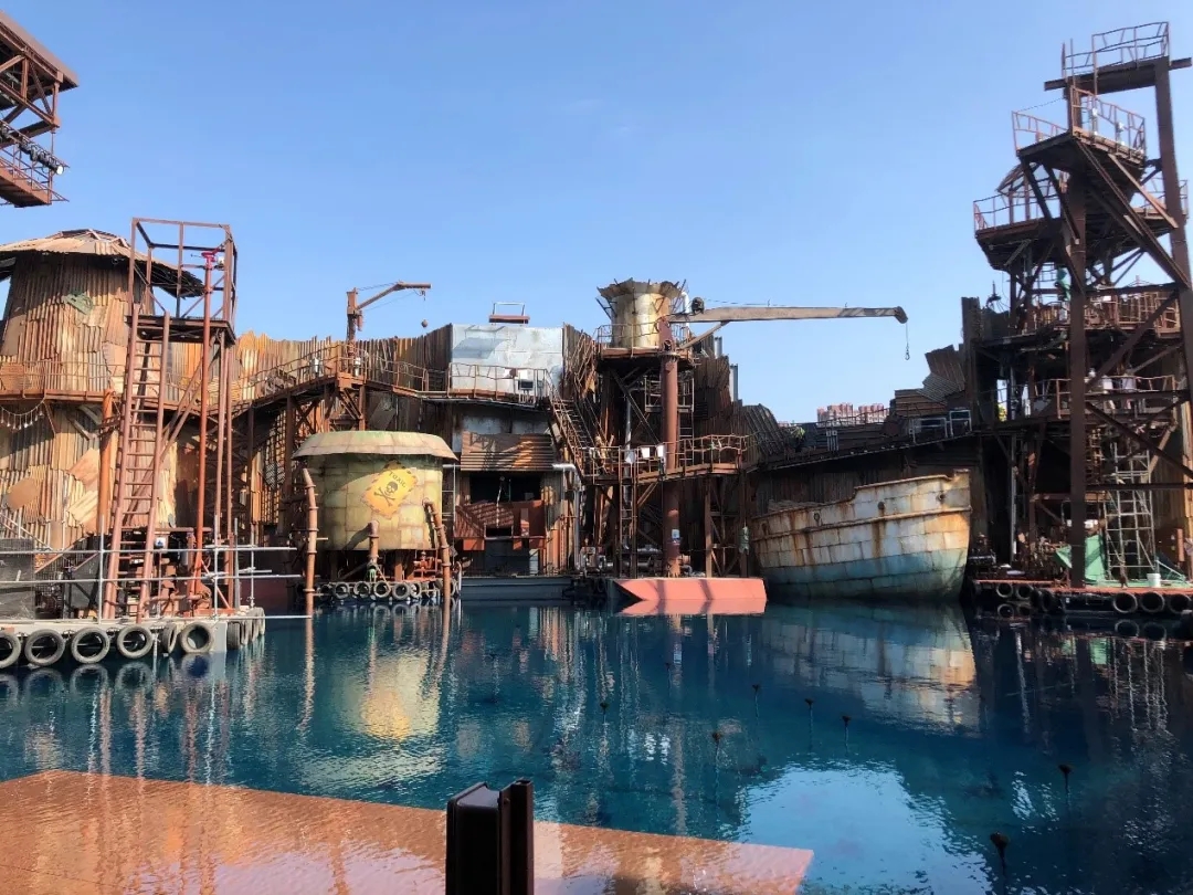 未來水世界中,游客能看到首屈一指的水上爆破特技表演,從水上摩托艇極速俯沖的驚險特技,到飛機觸目驚心的墜毀現(xiàn)場,零距離感受扣人心弦的生死搏斗帶來的逼真體驗。水世界表演區(qū)設計最大的難點是要在有限的場地內(nèi),用精確的定位表達出隨意搭建的工業(yè)效果,并滿足各種高難度的特技表演的需求。