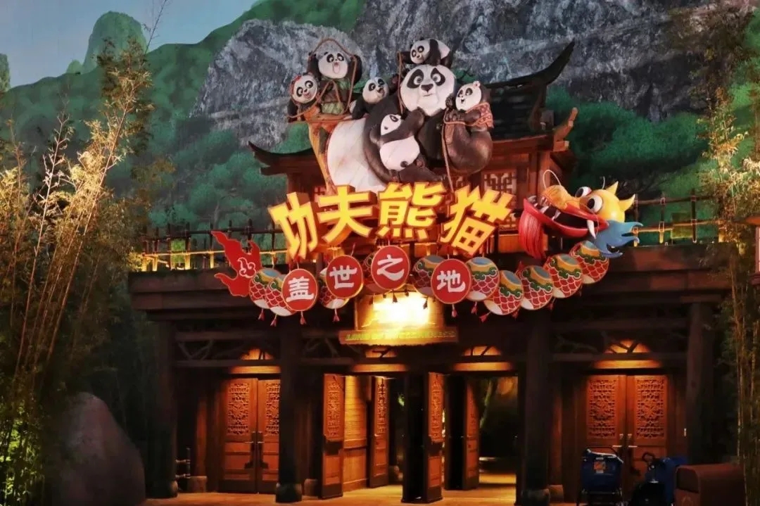 全球首個以“功夫熊貓”為主題的景區(qū)融入了眾多中國元素,景點使人仿佛進入到夢幻的東方仙境。景區(qū)東西兩端均設置進入景區(qū)的大門,集中表現(xiàn)中國傳統(tǒng)元素,設有大量風格獨特的游藝設備及道具布景,在主題照明和演繹照明以及豐富音效的渲染下,令人流連忘返。