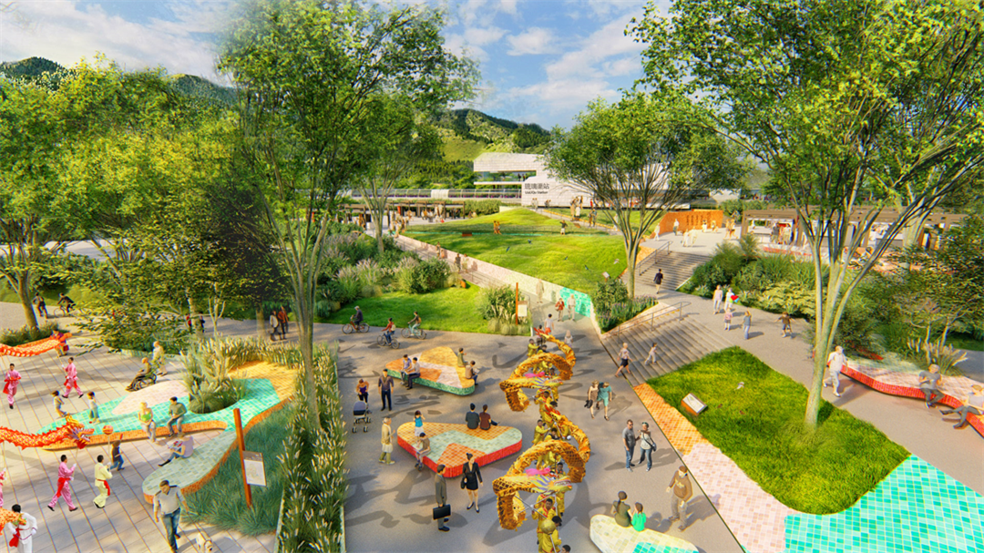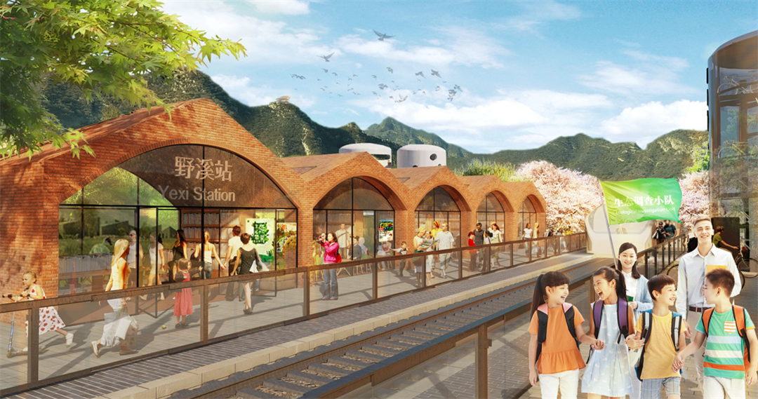 空間規(guī)劃上尊重山水文脈,以生態(tài)修復為基礎,通過精細化的生態(tài)評價還原健康的生態(tài)本底,騎行線、徒步線構建全域生態(tài)文化慢行體驗,不同的線路相互交織,共繪綠色復興的新夢想,結合村落資源特征,對琉璃渠站、野溪站進行了站點景觀節(jié)點設計。