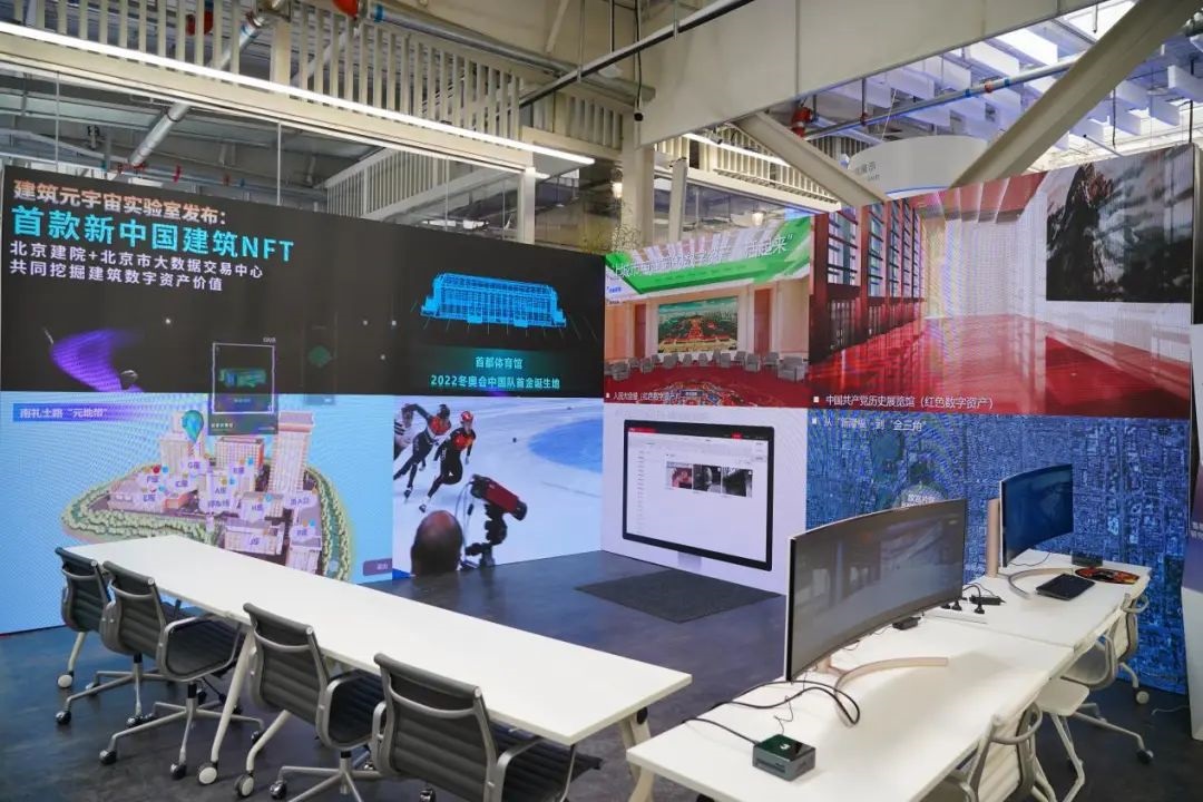 在建筑元宇宙實(shí)驗(yàn)室,調(diào)研組參觀了實(shí)驗(yàn)室即將發(fā)布的由北京建院與北京市國(guó)際大數(shù)據(jù)交易所共同推出的首款新中國(guó)建筑NFT數(shù)字產(chǎn)品首都體育館以及元宇宙系列產(chǎn)品—METALAND,其以北京建院南禮士路院區(qū)為映射打造元宇宙場(chǎng)景,可通過虛擬角色進(jìn)入該元宇宙,在線獲取北京市建筑設(shè)計(jì)研究院股份有限公司場(chǎng)景體驗(yàn)。