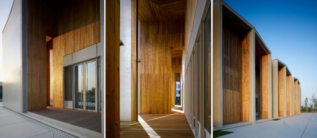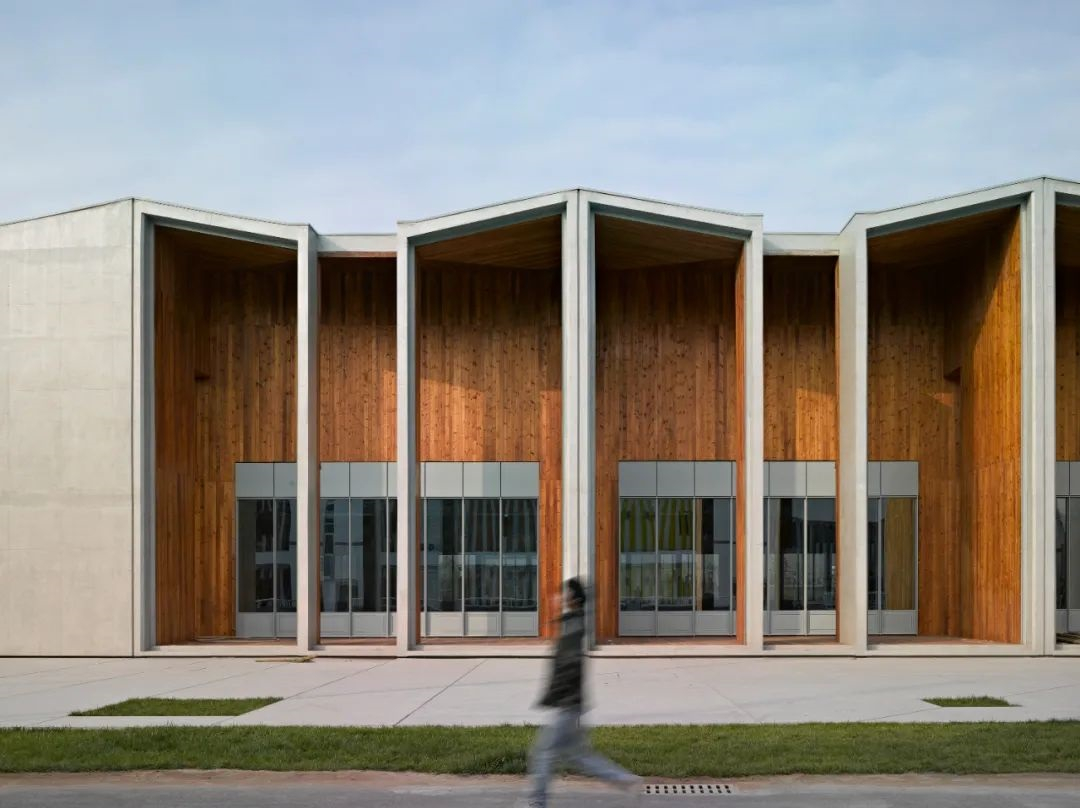 建筑位于北京建筑大學(xué)大興新校區(qū)內(nèi),是學(xué)生宿舍區(qū)內(nèi)的一個小型公共建筑。建筑設(shè)計最核心的是功能轉(zhuǎn)變,校園建設(shè)初期,建筑功能定位宿舍區(qū)配套商業(yè)設(shè)施,校園基本形成后,其功能轉(zhuǎn)換為一個多功能建筑。結(jié)構(gòu)為鋼筋混凝土,為了表達(dá)建筑機核的邏輯關(guān)系,屋頂、切割面為清水混凝土,切口內(nèi)為木質(zhì)外墻。